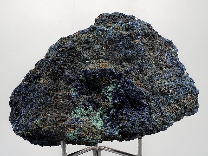 Kus masivního azuritu porostlý drobnými krystalky. |