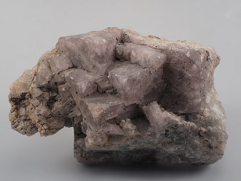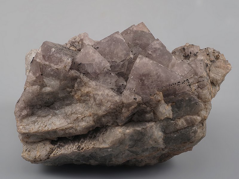 Drúza světle fialových krystalů fluoritu. |