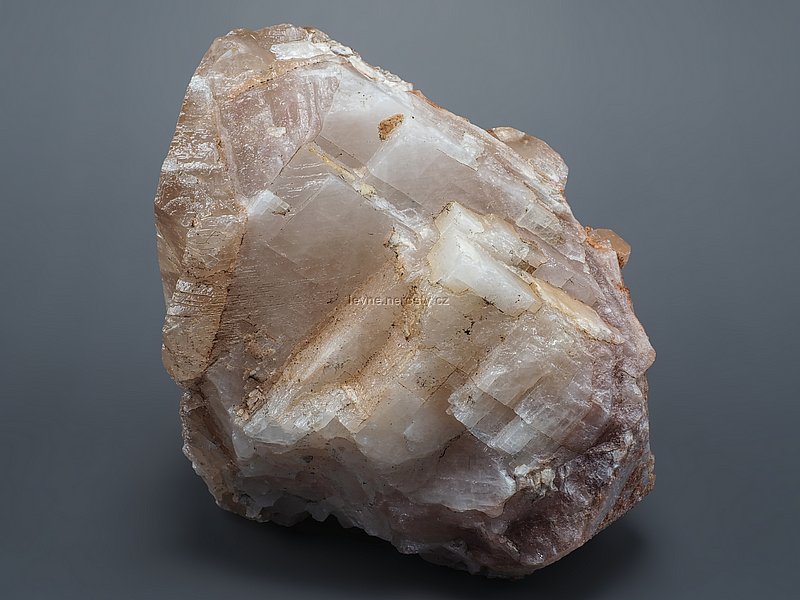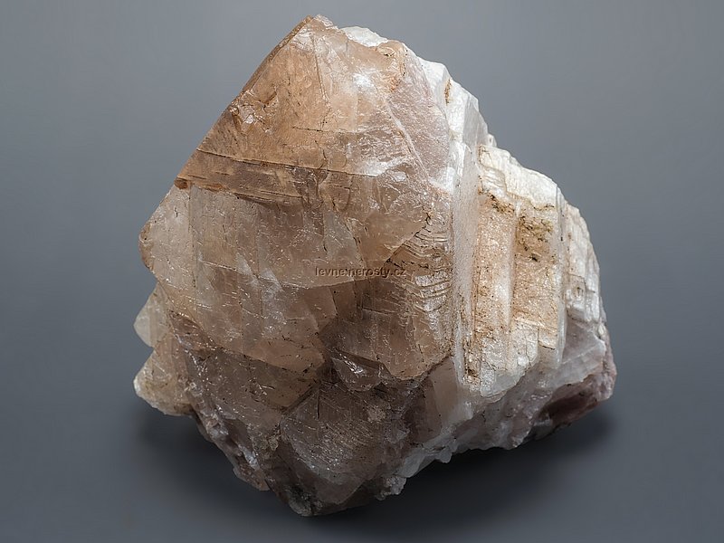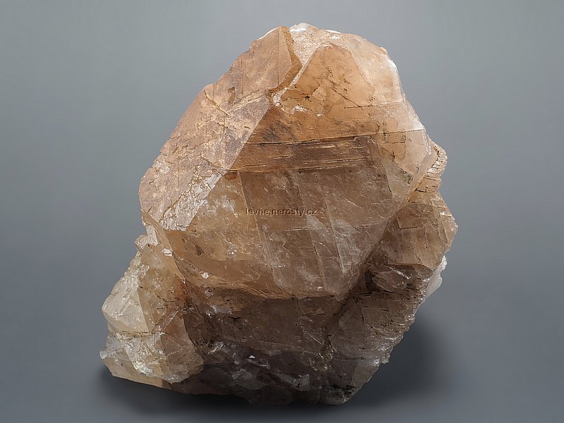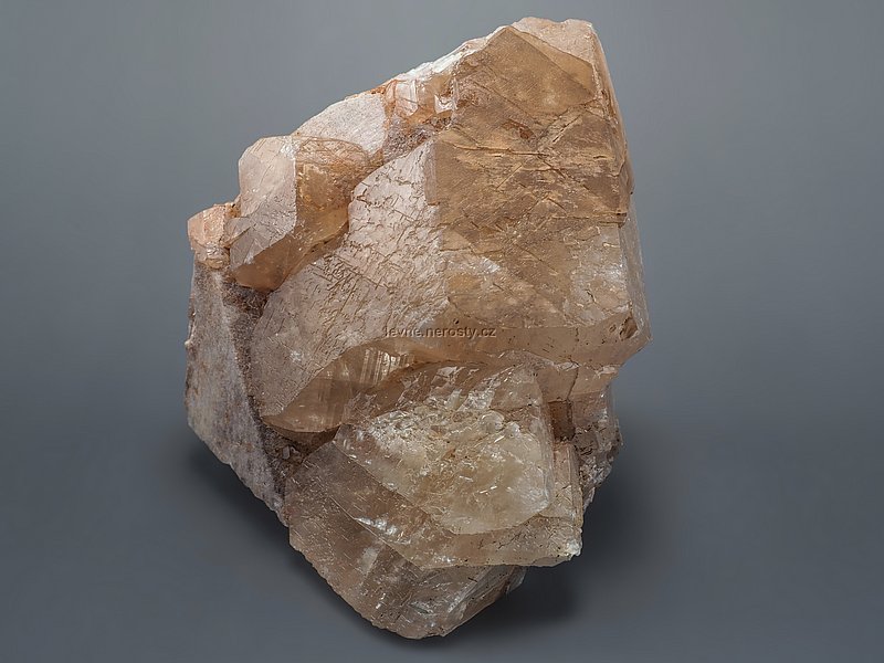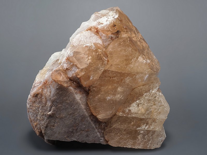 Část velkého růžového klence porostla medovým kalcitem druhé generace. |