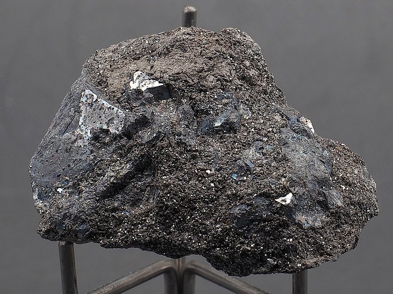 Krystalovaný skutterudit zarostlý v löllingitu. |